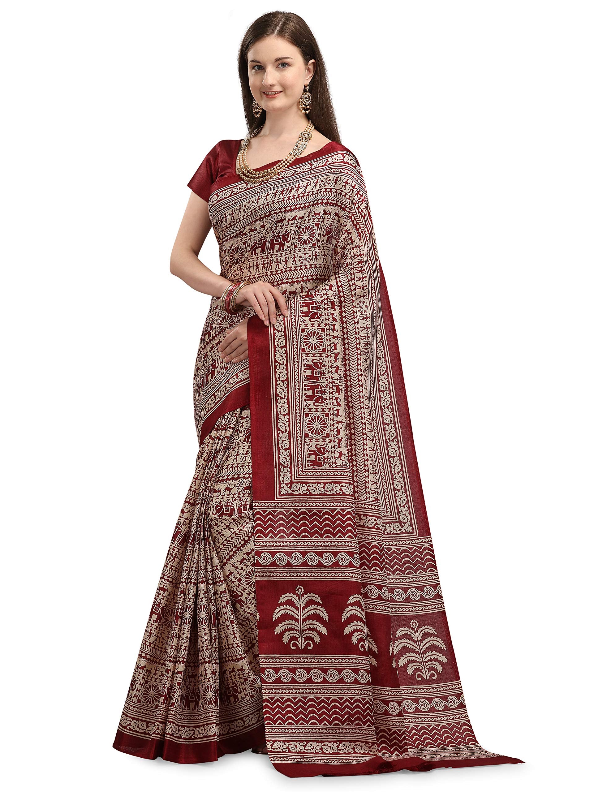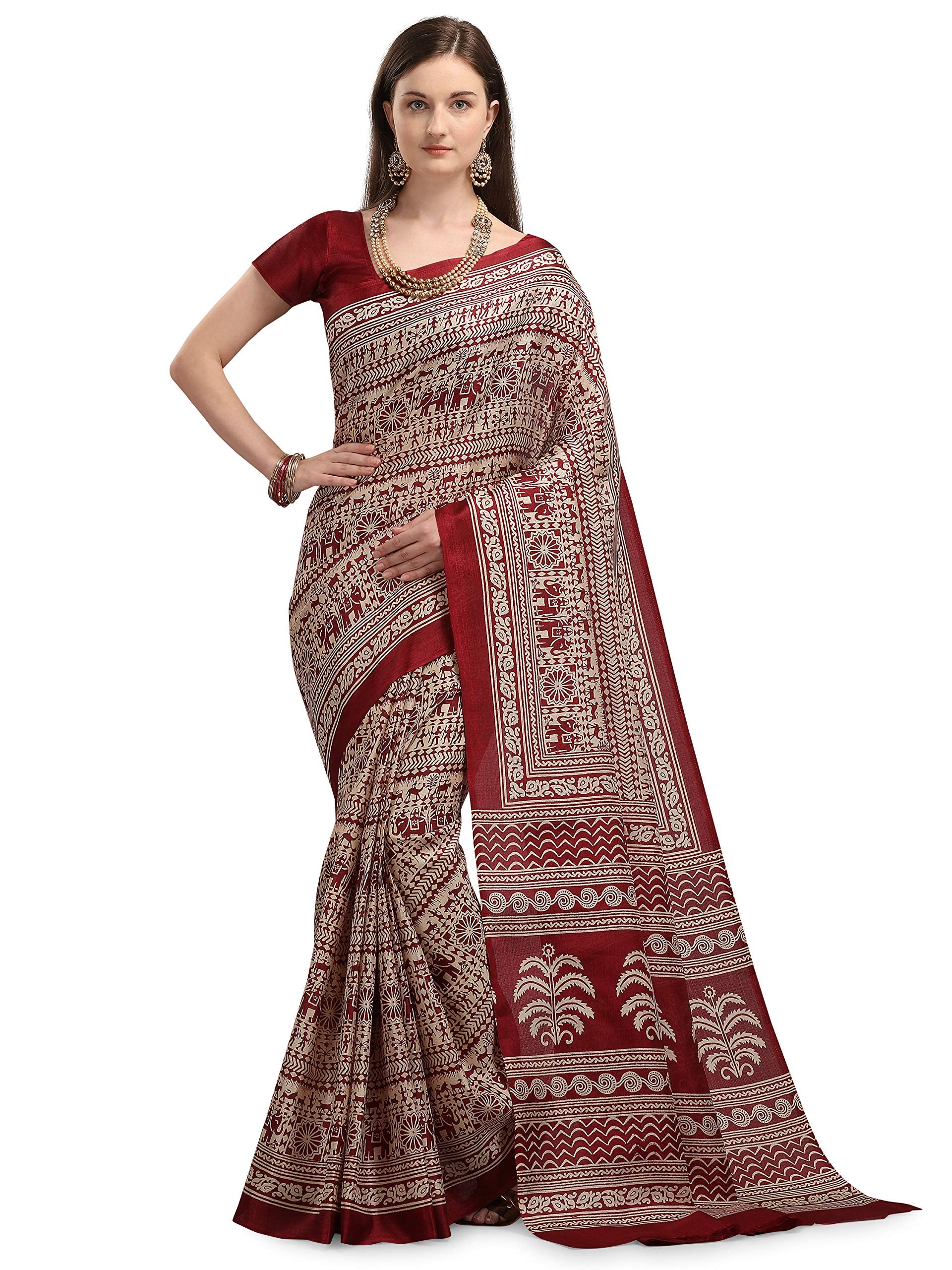 EthnicJunction Women's Silk Cotton Kalamkari Print Saree With Blouse Piece